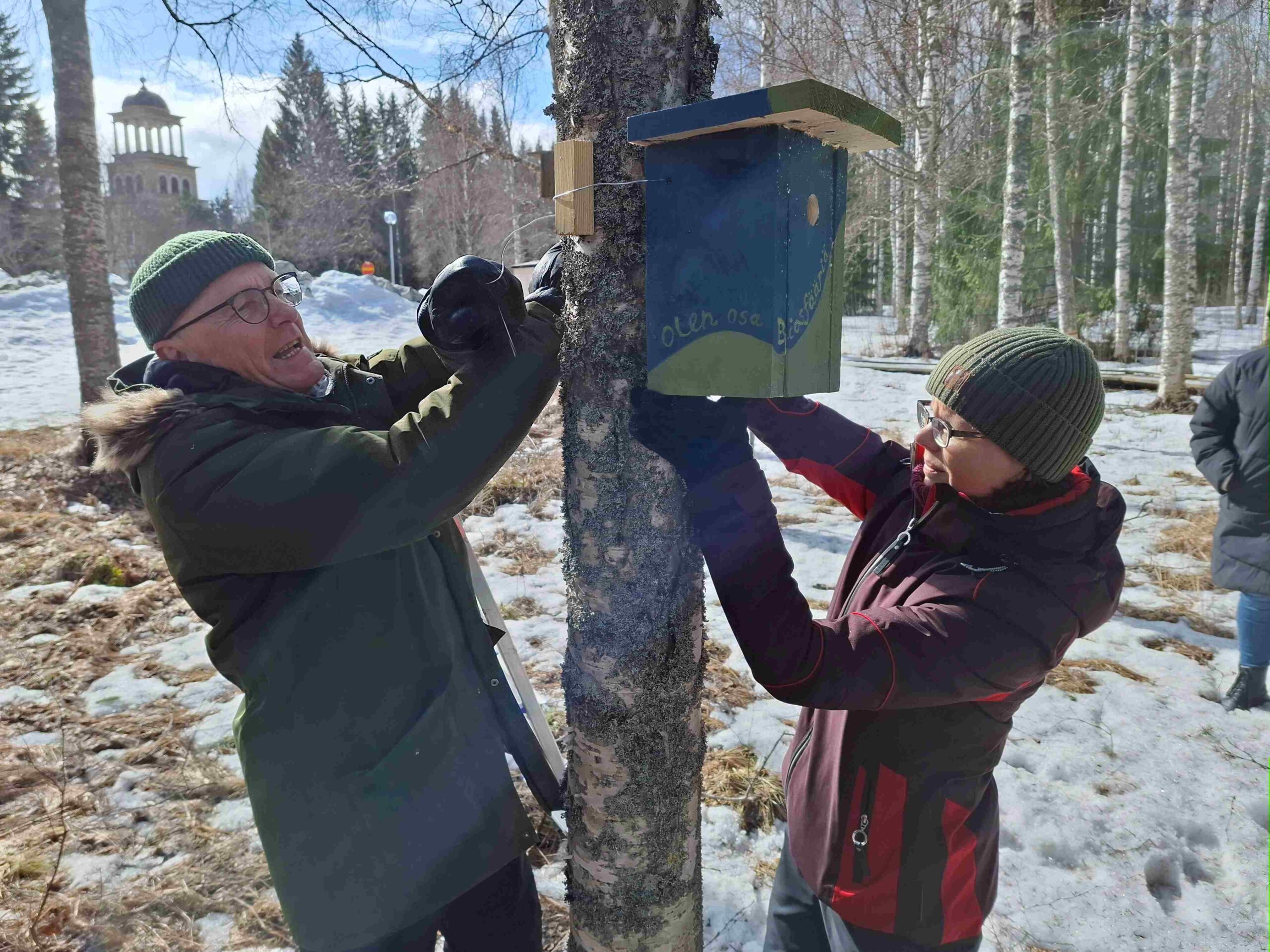 Tämä interaktiivinen kartta löytyy myös StoryMaps-esityksestä. Voit liikkua kartalla ja zoomata kohteisiin. Klikkaamalla eri pallukoita saat lisätietoja kohteista. Eri värit kertovat erilaisista toimenpiteistä: Punainen – vieraslajitorjuntaa, Sininen – pesien ja hyönteishotellien rakennusta, Vihreä – kulttuuriperinnön vaalimista ja Liila – monimuotoisuuden lisäämistä. Tarkemmat kuvaukset löydät StoryMaps-kartalta. Yllä on linkki esitykseen.